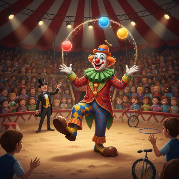 #2. Sam gaat naar het circus. De afbeelding toont de clown. Welke kleur heeft de neus?