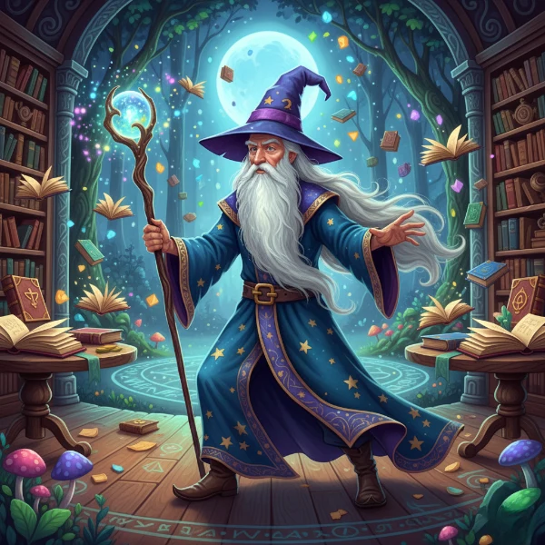 #4. Milan leest over een tovenaar. De afbeelding toont de tovenaar. Wat heeft de tovenaar?