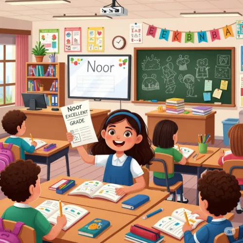 #5. Alex is in de klas. De leerling glimlacht omdat ze blij is met haar cijfer.
