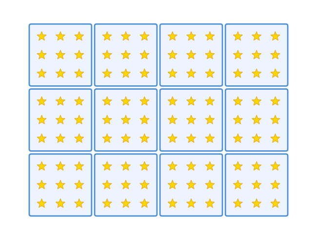 #1. Sara heeft 12 doosjes met elk 9 stickers. Hoeveel heeft Sara in totaal?