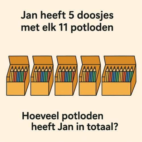 #4. Jan heeft 5 doosjes met elk 11 potloden. Hoeveel heeft Jan in totaal?