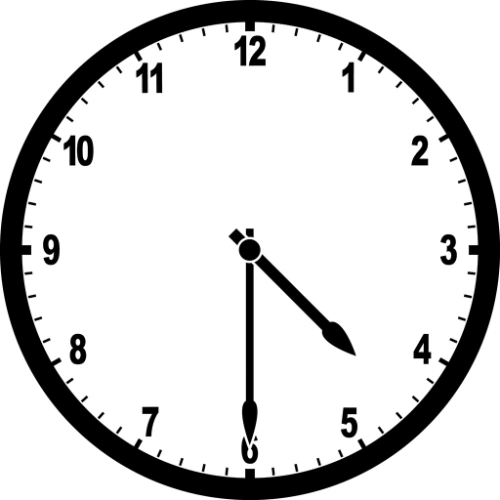 #1. [AFBEELDING] De grote wijzer wijst naar 10 en de kleine wijzer staat tussen 4 en 5. Hoe laat is het in 12-uurs formaat?