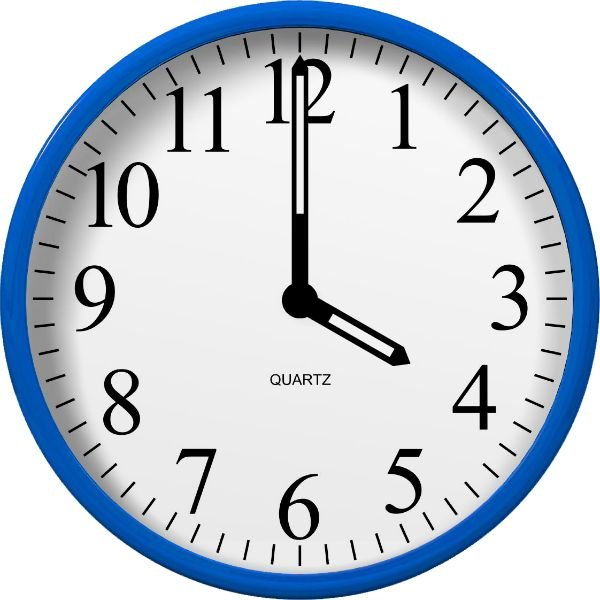 #4. Hoe laat is het als de grote wijzer op 12 staat en de kleine wijzer op 4?