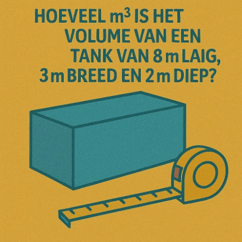 #8. Hoeveel m³ is het volume van een tank van 8 m lang, 3 m breed en 2 m diep?