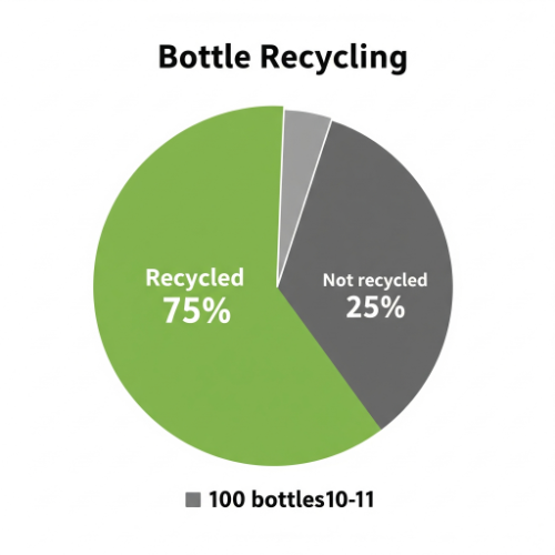 #7. Een cirkeldiagram toont het recyclen van 100 flessen: 75 flessen worden gerecycled en 25 niet. Hoeveel procent meer flessen worden gerecycled dan niet gerecycled?(Tabel: Gerecycled: 75; Niet gerecycled: 25)
