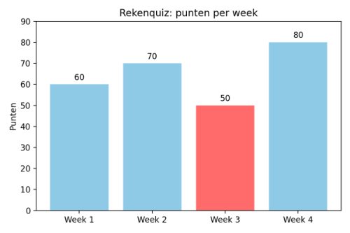 #7. In welke week daalt het aantal punten vergeleken met de vorige week in de lijst? (Tabel: Week 1: 60; Week 2: 70; Week 3: 50; Week 4: 80)