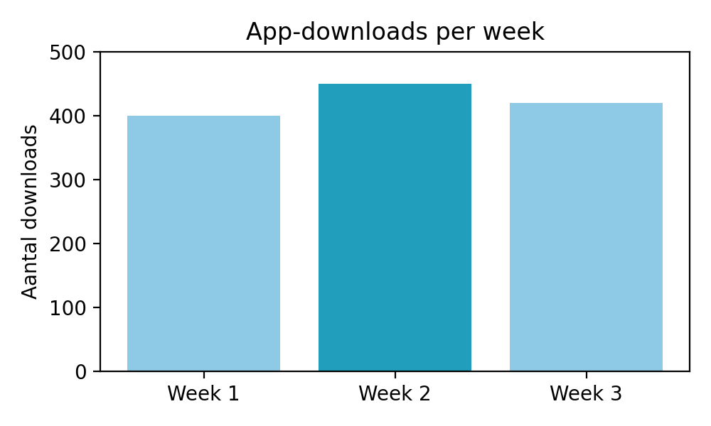 #8. Stijgt of daalt het aantal downloads van een app van week 1 naar week 3? (Tabel: Week 1: 400; Week 2: 450; Week 3: 420)