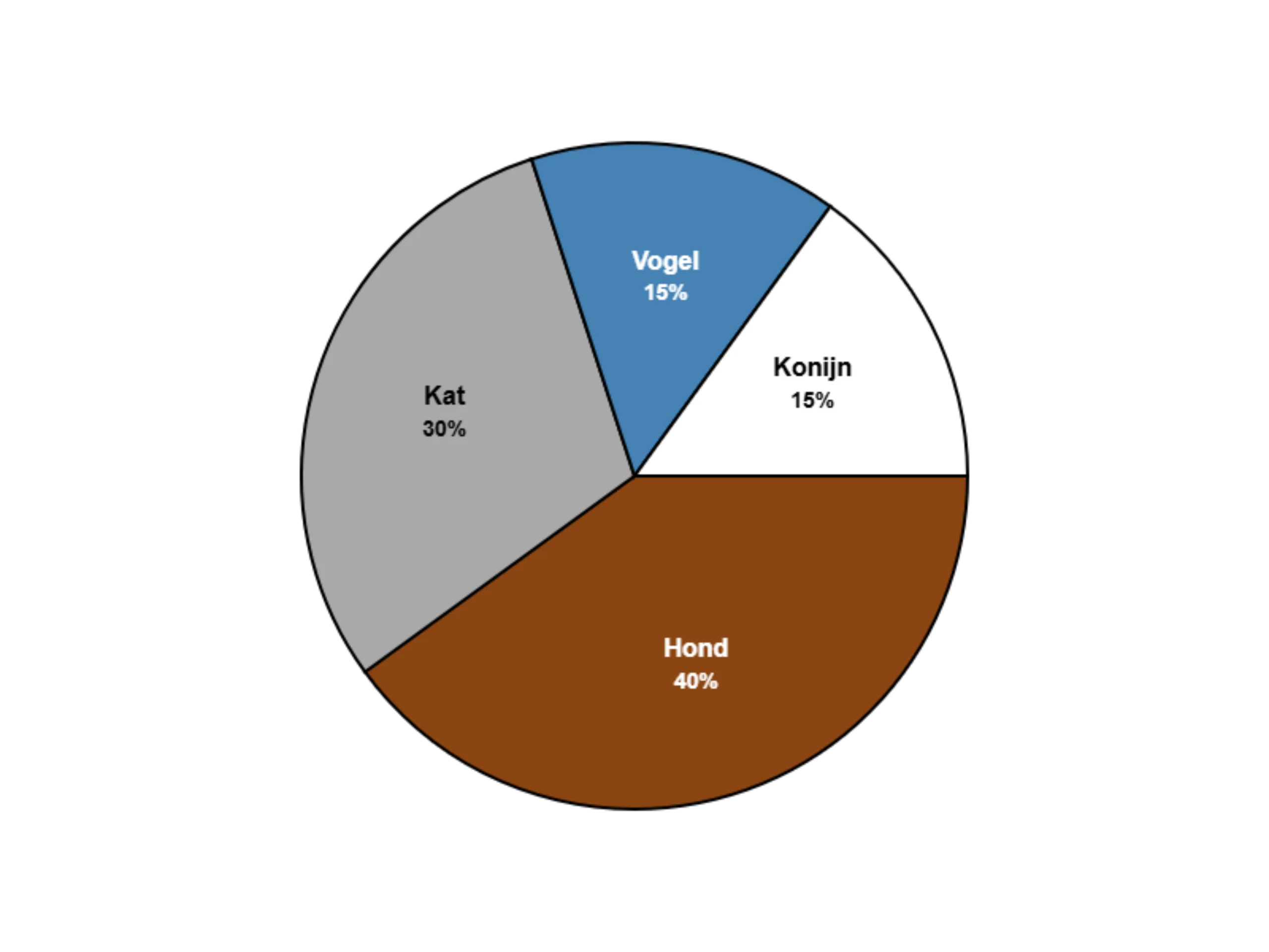 #9. Katten hebben 30% en vogels 15% in het diagram. Wat is de verhouding katten : vogels?