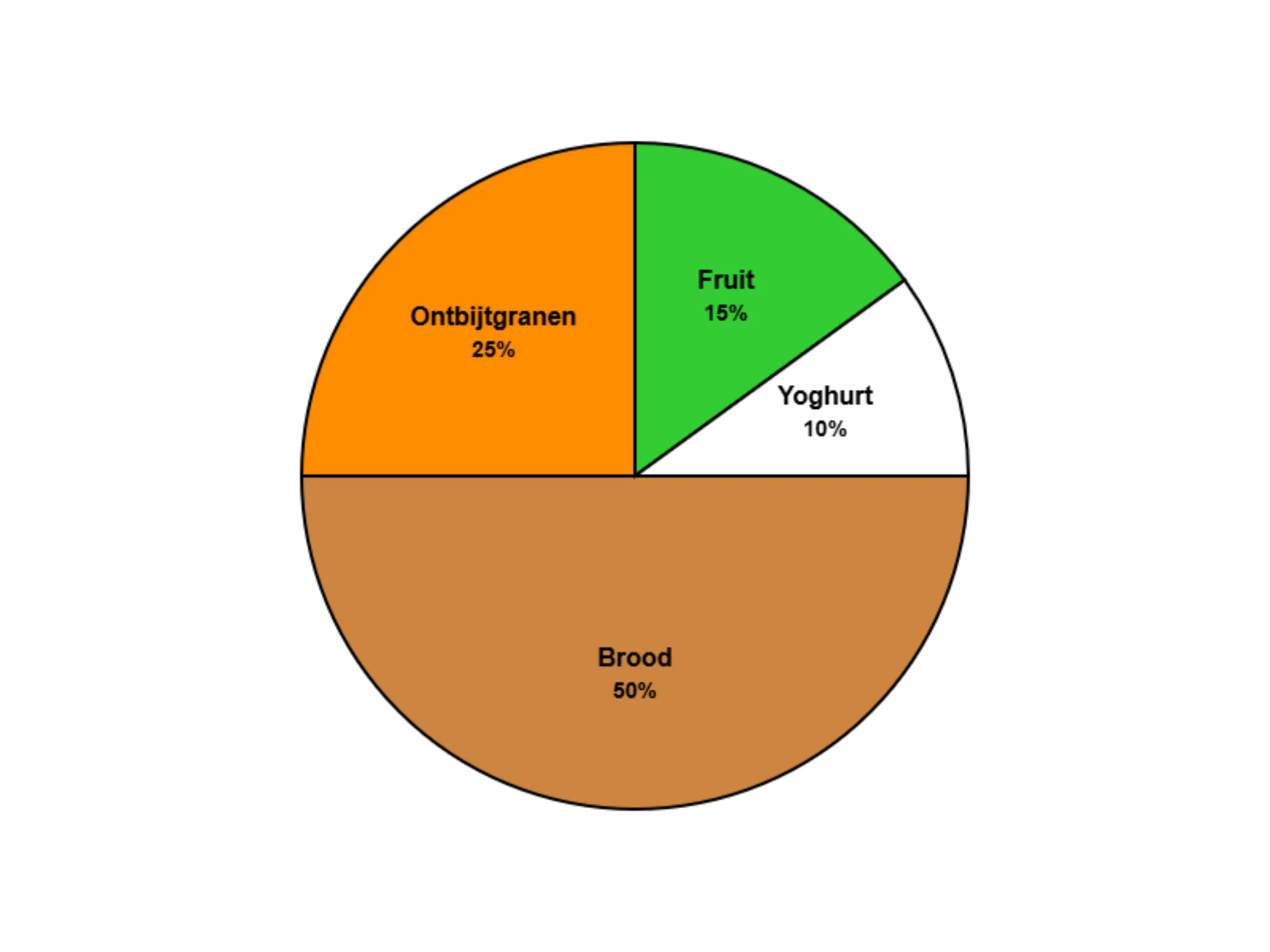 #4. Fruit en yoghurt hebben samen 25% in het ontbijtdiagram. Bij 200 kinderen, hoeveel eten fruit of yoghurt?