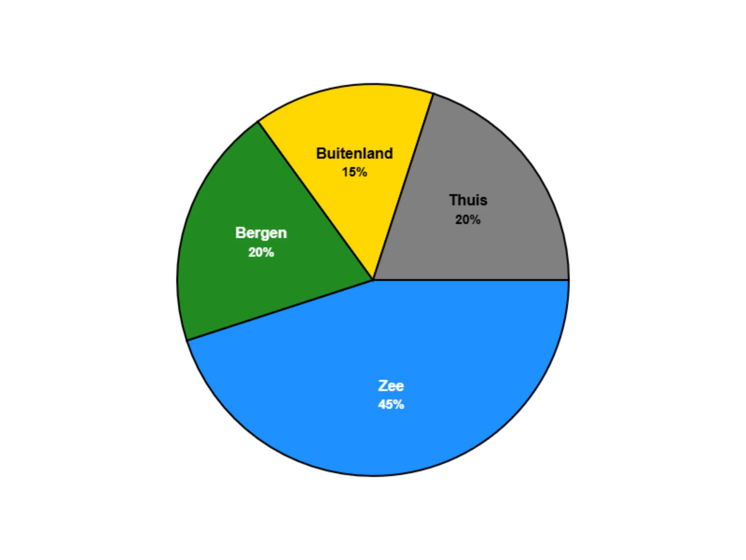 #7. Het diagram toont zee (45%), bergen (20%), buitenland (15%) en thuis (20%). Klopt dit totaal?