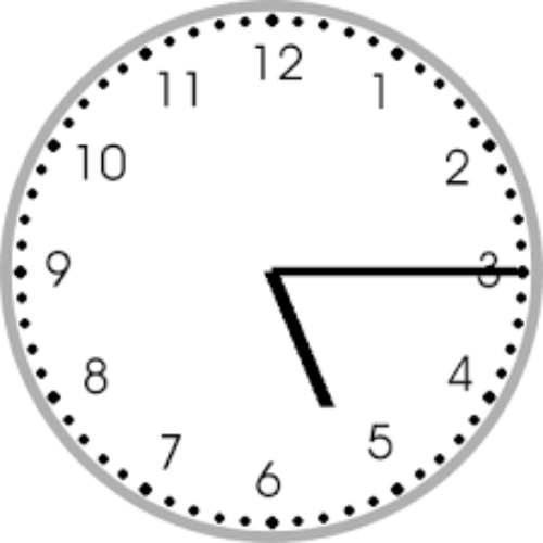 Zet digitale tijden om naar analoog: 15:45 = kwart voor vier.